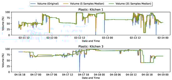 https://data.world/—accessed on 20 January 2021) for the keywords “waste”, “bin”, and “industrial” returned 95, 3, and 2 results, respectively. From these, none contained the keywords “restaurant” and “kitchen”. In contrast, the keyword “household” was associated with ten datasets. We thus believe that FIKWaste represents a very good and unique contribution to the waste monitoring and management research field as concerns distance based approaches since this was the methodology used in the FIK project.