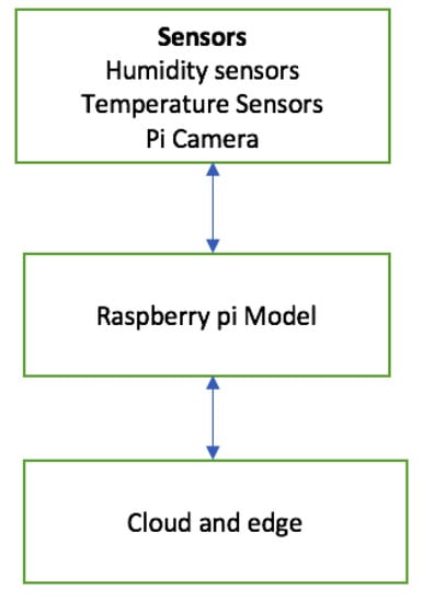 The following resources were instrumental in acquiring the data: Raspberry pi, Pi-Camera, Server, and programming languages. Raspberry Pi model B+ was adopted due to its increased processing power and its dual-band Wi-Fi Feature []. The Raspbian operating system for raspberry pi [] was used. Raspian was chosen as it is available at no cost and is easy to install and use. A raspberry pi camera of 8 megapixels was used. The board was chosen since it is very small, weighing around 3 g, making it perfect for deployment with the raspberry pi. Amazon Web Services (AWS) [] was chosen as a cloud provider for storage of the data. The AWS provides services that make it easy to store images and also offers an initial free service for 1 year. Python programming language [] was used in writing programs to capture the images using the Pi camera. The block diagram of the system for capturing the dataset is shown in Figure 1.