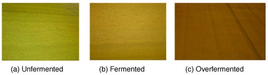 The fermentation level of overfermented tea is beyond the optimum and is dark red. Overfermented tea is in a folder labeled “overfermeted tea”. The images are labeled from “Overfermented _00” to “Overfermented _1999”. A sample of the images is presented in Figure 5c.