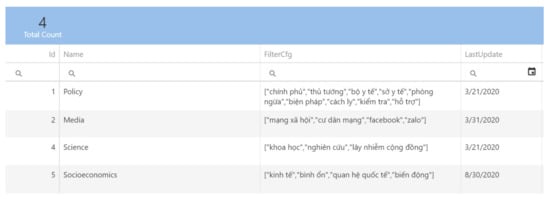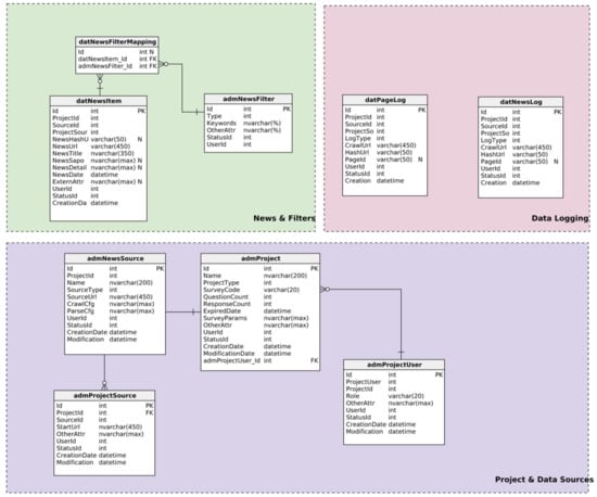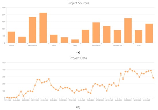 - Projects and Data Sources: The component includes online websites allocated into different categories, the HTML parse of the websites, projects, and sources of data for each project, as well as the projects’ data filter.
