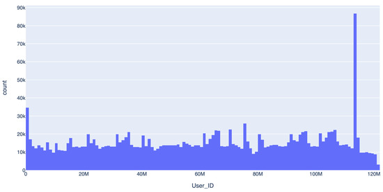 The collected dataset has certain limitations, including the following. Firstly, at the beginning of the collection, the API was queried, using constantly-spaced user identifiers rather than randomly sampled numbers. This method of collection was then later changed to sampling IDs uniformly from the ID space. However, due to the initial approach, some ID ranges, and hence, some sign-up periods, were over sampled, compared to others (please see Figure 1).
