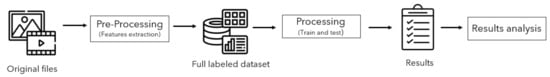 It has been chosen to validate the dataset with exactly 50 features extracted from each multimedia file. However, we have made experimental tests with sets with different lengths and collected the corresponding processing time and F1-score. Table 5 summarizes the results obtained, where it is possible to observe that between 50 and 100 features, the processing time almost doubled, and the F1-score slightly increases. The dataset validation was made with 50 features; however, it can be processed with different features sets of different lengths.