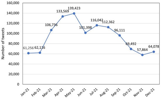 - We release the dataset to be freely available to the research community in the Mendeley data repository https://data.mendeley.com/datasets/zmwfnsms9n (accessed on 31 October 2022). The dataset can be useful for researchers in different fields to analyze people’s activity following the first announcement of the vaccine distribution or to perform comparative analysis. Moreover, scientific communities, public health agencies, and analysts might be interested in this dataset to obtain insights, make decisions, or design strategies that might help in some potential situations