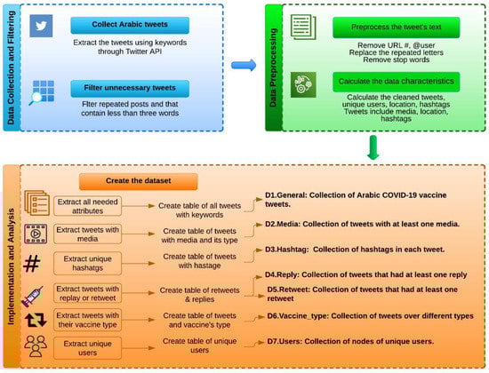- Mubarak, H.; Hassan, S.; Chowdhury, S.; Alam, F. ArCovidVac: Analyzing Arabic Tweets about COVID-19 Vaccination. arXiv 2022, arXiv:2201.06496. [Google Scholar] [CrossRef]