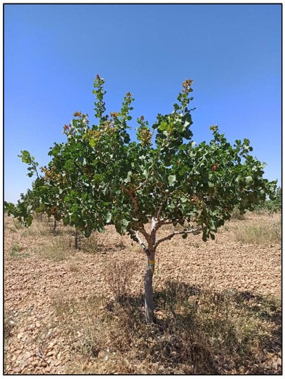 - Ferguson, L.; Polito, V.; Kallsen, C. The Pistachio Tree; Botany and Physiology and Factors That Affect Yield. In Pistachio Production Manual; University of California: Davis, CA, USA, 2005; pp. 31–39. [Google Scholar]