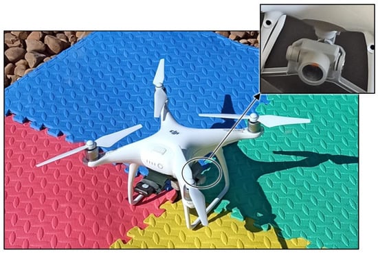 The aerial survey was performed using a UAV DJI Phantom Advance quadcopter (DJI Sciences and Technologies Ltd., Shenzhen, Guangdong, China) equipped with a DJI FC6310 RGB camera (Figure 5). It is a 35 cm length aerial platform with advanced characteristics such as obstacle detection (0.7–30 m range) and satellite positioning using GPS and GLONASS. According to the information provided by the manufacturer [], the UAV has a max horizontal speed of 72 kph, with a max tilt angle of 42°, and a max vertical Speed of 6 m/s and 4 m/s while ascending and descending, respectively. In addition, the max wind speed resistance is 10 m/s, and the max service ceiling above sea level is 19,685 feet (6000 m).