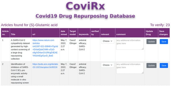 The scraped articles are then equitably assigned to admin users, who, as domain experts, verify the article and update the database. When an admin user becomes inactive or leaves, the articles assigned to them are distributed amongst the remaining admin users automatically. Articles are grouped drug-wise to ease verification as shown in Figure 13. The admin users can then view a list of the articles scraped, along with the drug, target model associated, and other keywords used for scraping as shown in Figure 14. If the articles found are relevant, the drug’s COVIDvid-19 assay data can be updated with the help of the “Update form” as shown in Figure 15.