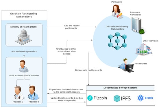 - Mehta, S.; Grant, K.; Ackery, A. Future of Blockchain in Healthcare: Potential to Improve the Accessibility, Security and Interoperability of Electronic Health Records. BMJ Health Care Inform. 2020, 27, e100217. [Google Scholar] [CrossRef]