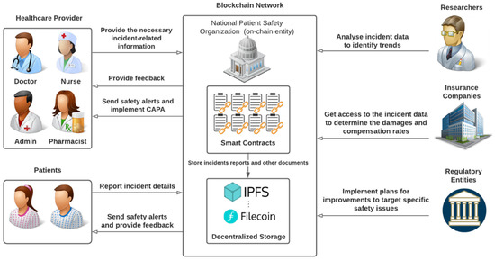 - Marbouh, D.; Simsekler, M.C.E.; Salah, K.; Jayaraman, R.; Ellahham, S. Blockchain-Based Incident Reporting System for Patient Safety and Quality in Healthcare. In Trust Models for Next-Generation Blockchain Ecosystems; Rehman, M.H.U., Svetinovic, D., Salah, K., Damiani, E., Eds.; EAI/Springer Innovations in Communication and Computing; Springer International Publishing: Cham, Switzerland, 2021; pp. 167–190. ISBN 978-3-030-75106-7. [Google Scholar]