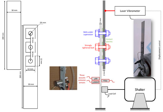 - Chevallier, G.; Ramasso, E.; Butaud, P. Detection and analysis of loosening in jointed structures using acoustic emission sensors and smart bolts. In Proceedings of the 37th Conference and Exposition on Structural Dynamics, Orlando, FL, USA, 27 January 2019; pp. 1–3. [Google Scholar]