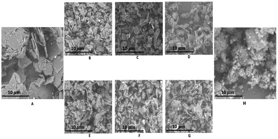 SEM images were obtained and are shown in Figure 8 [26,27] ∂. The SEM images of P-GnPs show that the platelets are randomly stacked on each other, forming aggregates, a behavior that suggests a strong hydrophobicity and van der Waals interaction.
