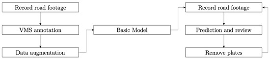 In [8] the first task was to create a dataset of images with the location of the VMS to properly train the supervised machine learning algorithms on which it is based, since there was no previous dataset of these characteristics; there were only datasets with their locations but no images [9,10]. Supervised learning consists of training the models using previously catalogued examples. Image labeling for training machine learning algorithms is an eminently manual task, so it is time consuming. At the time of writing this paper, there is, in the authors’ opinion, no free dataset with annotated images that can be used to train Machine Learning models for VMS recognition on images captured by a vehicle camera such as those discussed above. This publication presents a free-to-use Spanish labeled VMS dataset, using a methodology that allows to increase the number of instances with as little manual work as possible.