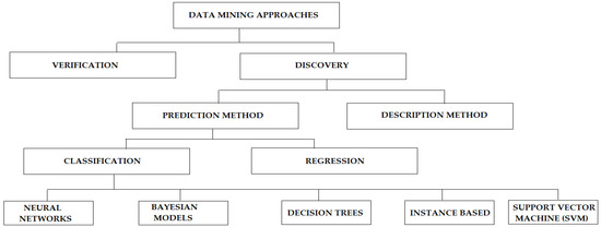 WEKA is a Data Mining tool used for managing the experimental analysis for data mining process such as (predictions, classification, clustering, association rule and evaluation); it also provides a flexible support for machine learning research and serves as a tool for introducing people to machine learning in the educational environment [8]. This research work focuses on using the J48 decision tree Classification model in WEKA to analyze the students’ academic performance of Information Technology (I.T) department in five universities across five countries which includes Iraq, Sudan, Nigeria, South Africa, and India. The data was obtained from the records of the undergraduate students in the final year study of the five countries in the second semester of examinations. The authors in [9] revealed the taxonomy for Data mining approaches and this was illustrated pictorially, see Figure 1.