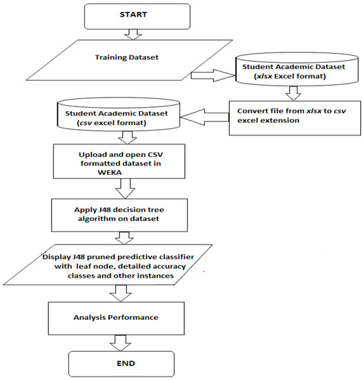 Flow Chart for Students’ Dataset analysis in WEKA [16].