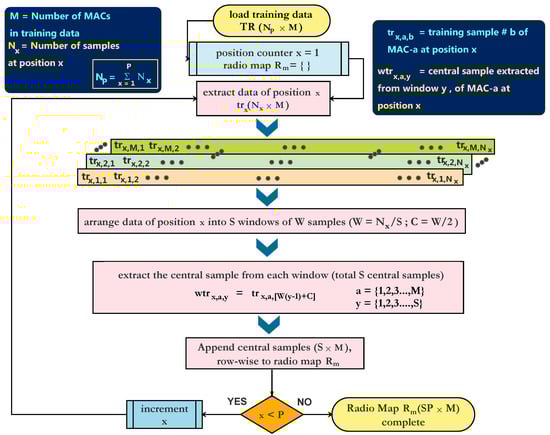 The remainder of this paper is organized as follows. In Section 2, related Wi-Fi RSSI datasets/databases are described. Section 3 explains pertinent features of the indoor environment, in addition to data collection procedure. Section 4 describes the raw data, datasets formation, and statistical analysis of collected data. Section 5 reports a proposed radio map generation algorithm. Additionally, baseline performance metrics are presented for implementation of a benchmark positioning algorithm. Finally, the main conclusions are reported in Section 6.