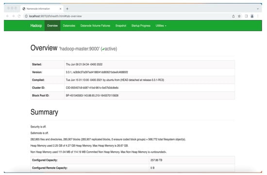 - Apache Hadoop. Available online: https://hadoop.apache.org/ (accessed on 3 August 2022).