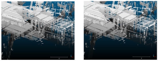 Industrial area (original and filtered). The distant, low point density spots have disappeared.
