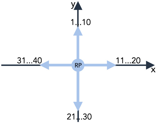 The radio map is made of 40 Wi-Fi samples per reference point, with 10 Wi-Fi samples collected at each of four directions turning clockwise, as shown in Figure 5. The mobile unit was placed on the reference point position (RP), and then it was turned to face each one of the four directions while collecting Wi-Fi samples.