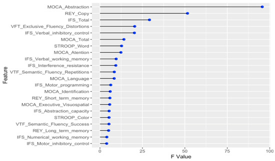 By identifying the most important features that are significantly different among each group, it is possible to develop a more accurate model which can accurately predict the class labels for new data. To select features, the procedure consisted of identifying those characteristics that presented significant differences among each of the groups (classes). The homogeneity of variance test method used was the Levene test. As a result, 23 features with p < 0.05 were extracted from the original 36 features. These 22 features are shown in Figure 2.