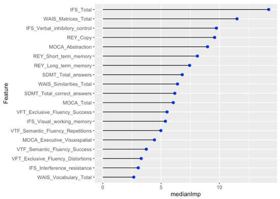 The three most relevant features are as follows: IFS_Total, WAIS_Matrices_Total, and IFS_Verbal_Inhibitory_control.