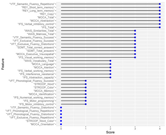 The dataset was built using the following cognitive instruments: Osterrieth Complex Figure; INECO Frontal Screening; Montreal Cognitive Assessment; Stroop Color-Word Test; WAIS; and Symbol Digit Modalities Test. The final dataset contains 138 observations and 39 features, as shown in Table 1.