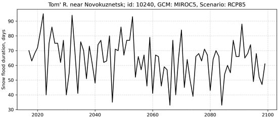 Projected snow flood duration (days) for Tom’ R. near Novokuznetsk.