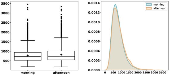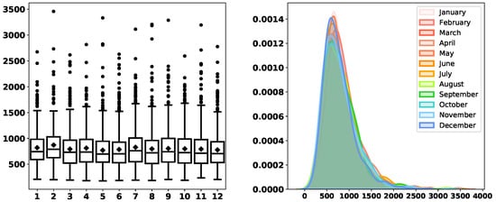 We are interested in the service times and informative characteristics distinguishing them. Therefore, we explore the distribution of