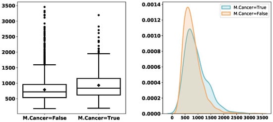 The number of consultations grouped by M.Cancer: 620 consultations have the variable M.Cancer being ‘TRUE’ and 6017 ‘FALSE’.