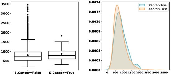 The number of consultations grouped by S.Cancer: 67 out of 6637 consultation records correspond to S.Cancer being ‘TRUE’.