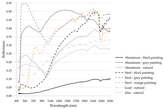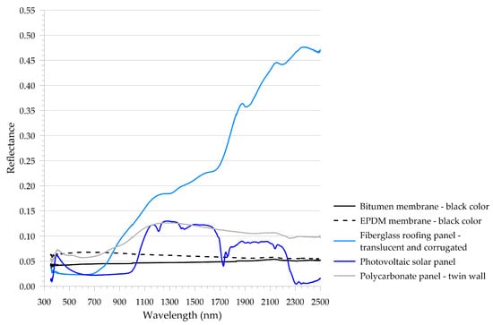 - Zambrano-Prado, P.; Josa, A.; Rieradevall, J.; Pérez-Aragüés, F.; Marchan, J.F.; Gassó-Domingo, S.; Gabarrell, X. Laboratory-Based Spectral Data Acquisition of Roof Materials. Int. J. Remote Sens. 2020, 41, 9180–9205. [Google Scholar] [CrossRef]