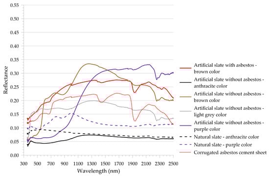 - Krówczyńska, M.; Wilk, E.; Pabjanek, P.; Kycko, M. Hyperspectral Discrimination of Asbestos-cement Roofing. Geomat. Environ. Eng. 2017, 11, 47. [Google Scholar] [CrossRef]