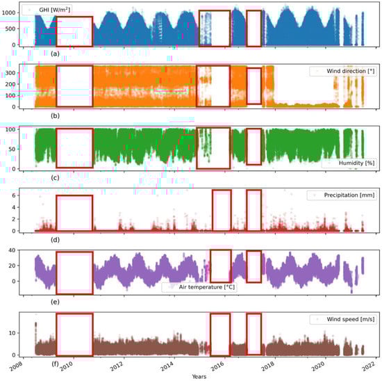 - Yang, D.; Wang, W.; Hong, T. A historical weather forecast dataset from the European Centre for Medium-Range Weather Forecasts (ECMWF) for energy forecasting. Sol. Energy 2022, 232, 263–274. [Google Scholar] [CrossRef]
