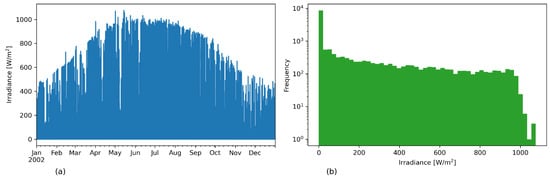 - Its temporal representation, because it presents irradiance data for an 18-year period from January 2002 to December 2019 with a temporal resolution of 30 min.