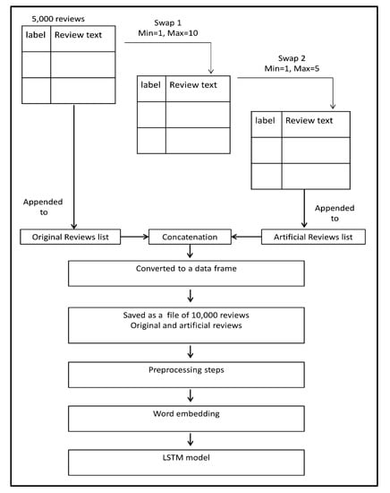 Figure 11 shows the steps for obtaining 10,000 reviews from the original 5000 reviews by applying the random swap method twice.
