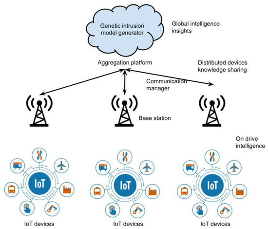 In this section, a novel method for cloud-based smart contracts in FinTech data and their intrusion detection with a cyber-threat federated graphical authentication system are proposed and discussed. Federated learning is used to train models by distributing existing training models to multiple personal edge devices as well as utilizing the edge devices’ local data, as shown in Figure 1. In order to update global model, central server accepts as well as incorporates training results from each edge device.