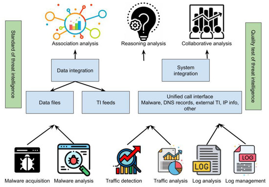 (2) Threat intelligence. A threat intelligence quality test, data integration, and system integration are among the duties related to threat intelligence. Common standards for threat intelligence include STIX, TAXII, CybOX, Yara, and OpenIOC, among others. These standards can be utilized and referenced in practical attribution analysis work. The process of combining different data files as well as feeding threat intelligence data to the central database is known as threat intelligence data integration. The IP-related data, including systems such as ZoomEye, Shodan, and IVRE, are combined. In attribution analysis, we can fully utilize threat intelligence through system integration. The purpose of the quality test on threat intelligence is to improve the analysis result by assessing the quality of threat intelligence since its exchange. The attribution of cyber-attacks is based on threat intelligence.