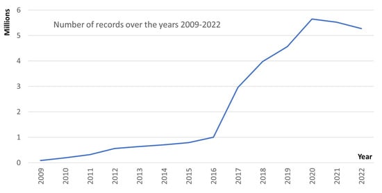 Figure 4 shows the growth of the database from 2009 to 2022. The rebranding of the service from Hascheck to ispravi.me, new features, new user interface as well as our social media promotional efforts and media coverage resulted in a significant increase in usage during 2016. This chart does not include the incomplete years of 2008 and 2023. The stronger increase in usage in 2020 was most likely due to the outbreak of the COVID-19 pandemic as more users stayed at home and used our service for business or school purposes.