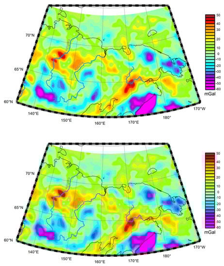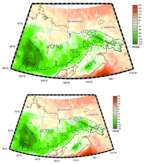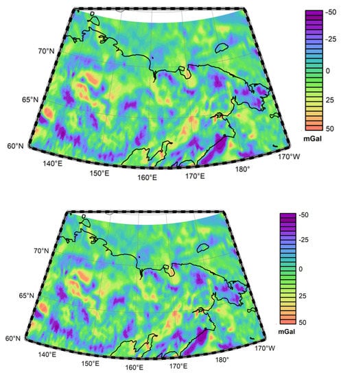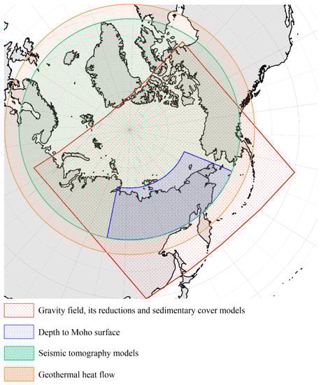 - Sidorov, R.V.; Kaban, M.K.; Soloviev, A.A.; Petrunin, A.G.; Gvishiani, A.D.; Oshenko, A.A.; Popov, A.B.; Krasnoperov, R.I. Sedimentary basins of the Eastern Asia Arctic zone: New details on their structure revealed by decompensative gravity anomalies. Solid Earth 2021, 12, 2773–2788. [Google Scholar] [CrossRef]
