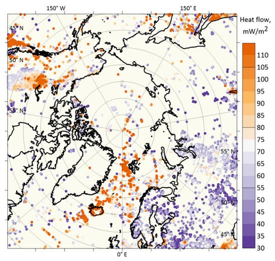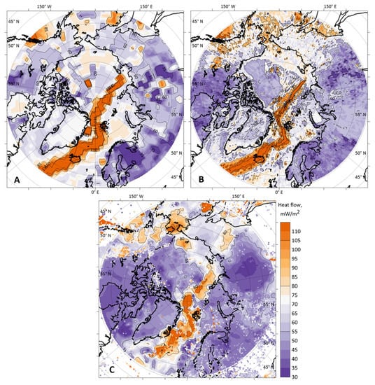 - Petrunin, A.G.; Soloviev, A.A.; Sidorov, R.V.; Gvishiani, A.D. Inverse-forward method for heat flow estimation, a case study for the Arctic region. RJES 2022, 22, ES6004. [Google Scholar] [CrossRef]