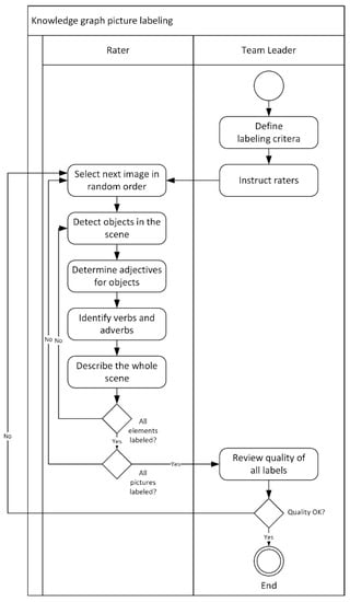 In addition, all team members were trained on the criteria and labeling process prior to the labeling process to ensure consistency and accuracy. A set of pictures retrieved from the Internet were used for the training to ensure that members were not familiar with the NAPS pictures before they began the labeling process. The entire annotation methodology employed to label the NAPS pictures in the presented knowledge graph dataset is described with the UML activity diagram in Figure 7.