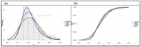 - Merovci, F.; Khaleel, M.A.; Ibrahim, N.A.; Shitan, M. The beta Burr type X distribution properties with application. SpringerPlus 2016, 5, 697. [Google Scholar] [CrossRef]
