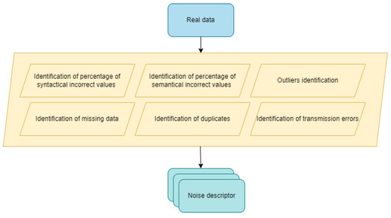 The first processing layer is represented by the extraction of real-world data characteristics. As a result, a set of real-world data descriptors is obtained. This processing step contains a combination of different methods for constructing a model of the real-world data from which the synthetic data can be obtained. The use of statistical methods such as the probability distribution represent a valid mechanism for obtaining a real-world data descriptor. Data distribution analysis, volume analysis, type of noise identification, and syntactical analysis of real-world data are other methods of obtaining real-world data descriptors. Choosing the methods for generating the descriptors is directly linked with the nature of the data and the characteristics of the data that are important to be considered.