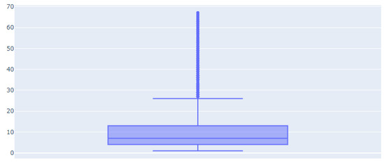 36]. The popularity of RMSE is based on the fact that it is easy to understand. It is computed by taking the square root of the average of the squared differences between the predicted and the actual values, as shown in Equation (