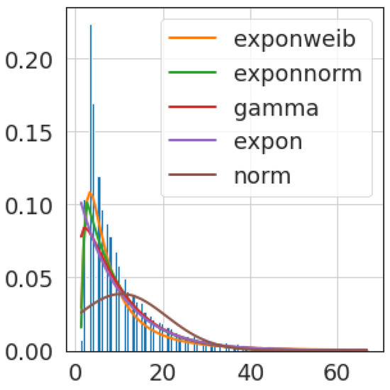 Figure 7, we can observe the summary provided by the fitter package that was used in order to find the distribution probability that best fits the interaction duration signal for one of the appliances considered for this analysis.