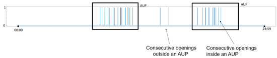 As a result of this step, two real-world data descriptors are generated, corresponding to the signal that models the duration between consecutive interactions inside an AUP and the signal representing the duration between consecutive openings outside an AUP.