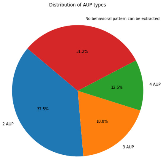 With this setup, we deploy the usage mining script in the above-described data lake. Similar behaviors of using the smart device mainly in two periods of the day (2-AUP) are found for 37.5% of the devices. Patterns of using the appliance in mainly three periods of the day (3-AUP) are found for 18.75%. Using the device in four time intervals (4-AUP) is found in 12.5% of the analyzed devices. No behavioral pattern could be extracted from 31.25% of the devices. A visual representation of these results is shown in