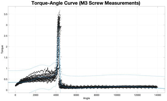 Characterizing the torque–angle curve is crucial for ensuring reliable automotive assemblies. Accurate characterization allows engineers to predict clamping force based on the applied torque, minimizing the risk of fastener failure. The authors of [,,] emphasized the importance of understanding this relationship in developing torque control strategies, such as torque–angle control or torque-to-yield methods, which are widely used in automotive manufacturing.