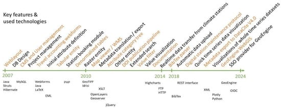 The need to provide data access for the interdisciplinary program in SE Ecuador resulted in the development of the first meta-database connected to a simple file system in the year 2001 []. The increasing diversity of data and the need to make it available to the research program and the public led to the development of the TMFdw in 2007, which has continued to evolve ever since (see Figure 1 []).