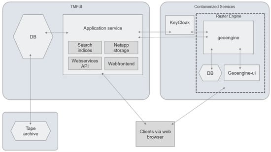 In the current program, a new challenge was to include big, raster data [], which was not possible with the recent structure of the TMFdw. As described below (Section 2.2.1), the Geo Engine greatly improves the very basic raster data handling of the existing TMFdw implementation, providing web GIS functionality and better raster data storage capabilities. Relevant raster data are (i) customized climate and land-use model data for testing and forcing of a newly developed land surface model (LSM) HUMBOL-TD (Hydroatmo Unified Model of Biotic interactions Organic Matter and Local Trait Diversity), [], (ii) high-resolution area-wide data from HUMBOL-TD model runs, and (iii) the continuously AI-generated high-resolution microclimate raster data using the automatically harvested tabular AWS data from the implemented use case For the model applications, we strive for a grid resolution of 1 km; for further analyses (land use changes, area-wide microclimatic data), we work on a 30 m grid resolution. Depending on the application, the temporal resolution of datasets ranges from 5 min to annual aggregation. To avoid unnecessarily high development costs, we decided to include and adapt a readily available framework for storing and analyzing big raster data for the ecological domain, the Geo Engine [].