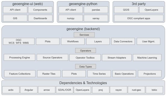 - Beilschmidt, C.; Drönner, J.; Mattig, M.; Schweitzer, P.; Seeger, B. Geo Engine: Workflow-Backed Geo Data Portals. 2023. Available online: https://dl.gi.de/server/api/core/bitstreams/c549a4d3-b898-436d-b664-a9cdc6fec6ba/content (accessed on 26 November 2024).